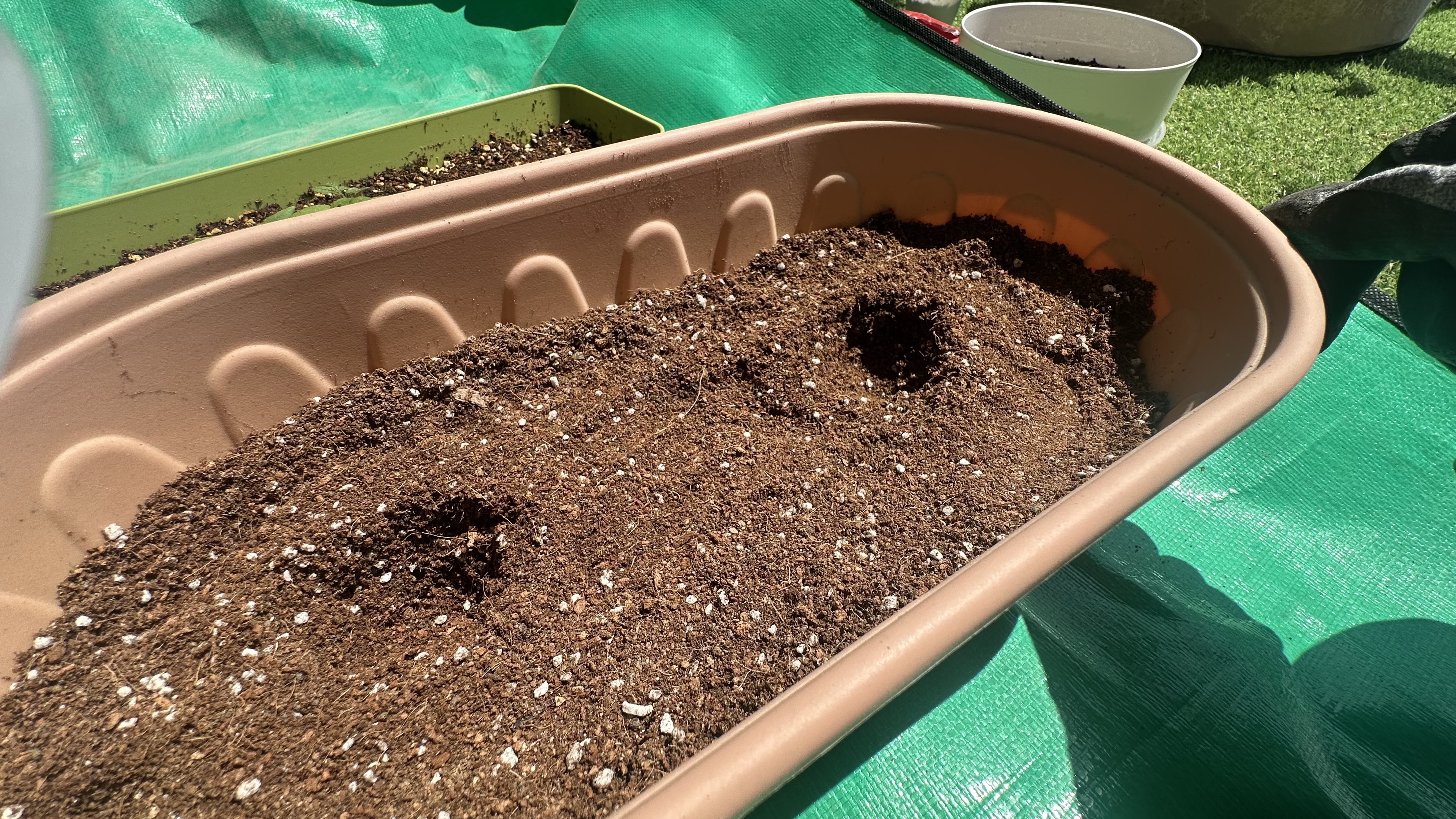 3) 적정 거리마다 흙에 구멍을 내줍니다. 저는 15cm 간격으로 심어주었어요