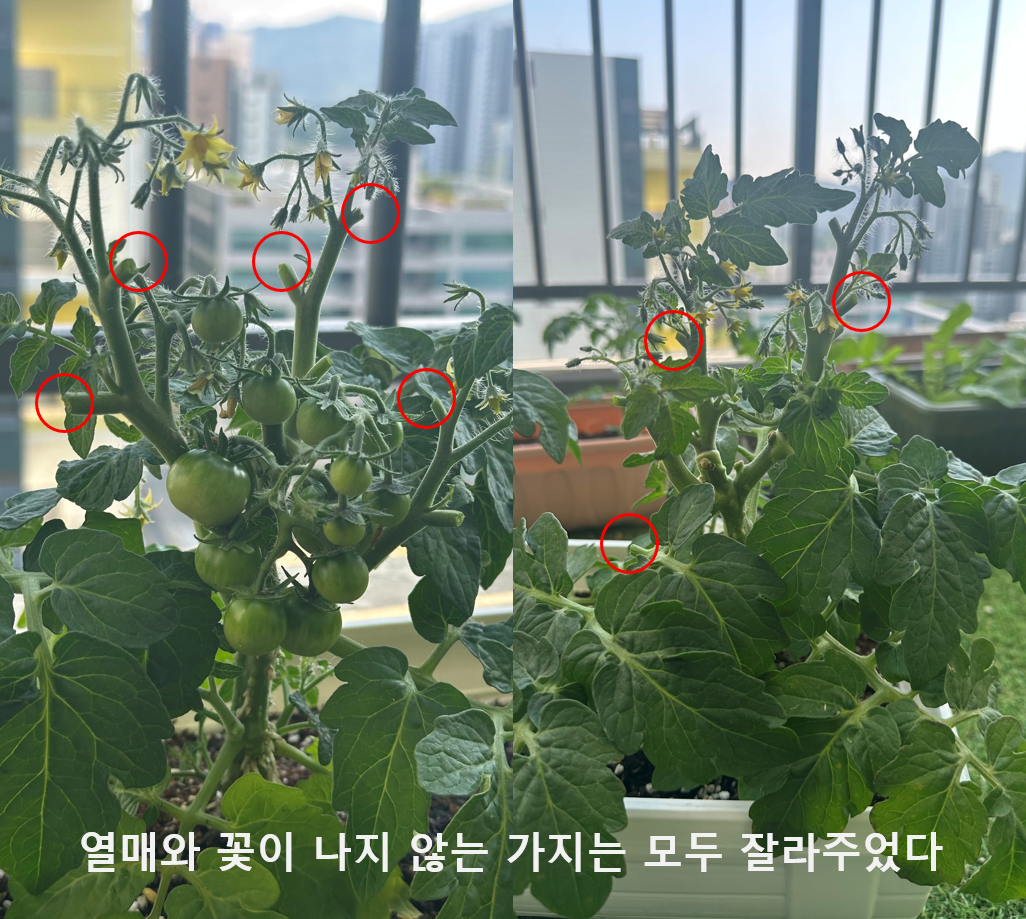 이렇게 잘라주면 잎으로 갈 영양분들이 열매로 집중되어 더 탐스러운 열매를 수확할 수 있습니다^^